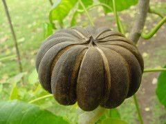 The sandbox tree is a large tree in the spurge family and native through most of tropical America. This tree is among the largest trees of tropical America and is interesting for its pumpkin-shaped seed capsules that explode with a loud report, scattering the seeds. Sandbox trees have poisonous leaves, bark, and seeds and the explosions of their capsules, which have enough force to injure persons or livestock, can be deadly.
