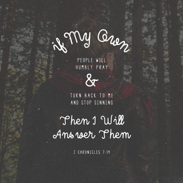 14 If my people, which are called by my name, shall humble themselves, and pray, and seek my face, and turn from their wicked ways; then will I hear from heaven, and will forgive their sin, and will heal their land.