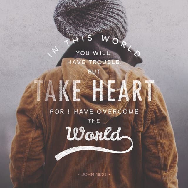 These things I have spoken unto you, that in me ye might have peace. In the world ye shall have tribulation: but be of good cheer; I have overcome the world. John 16:33 KJV
