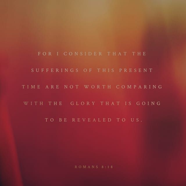18 For I reckon that the sufferings of this present time are not worthy to be compared with the glory which shall be revealed in us.