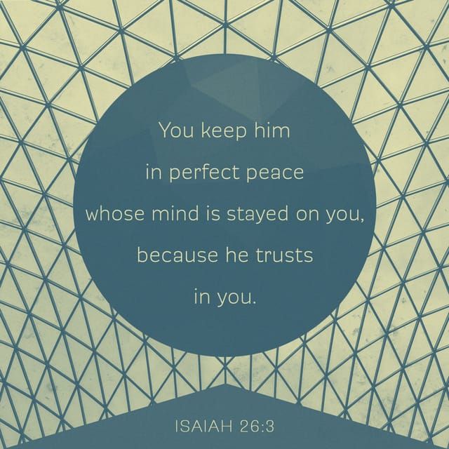 Thou wilt keep him in perfect peace, whose mind is stayed on thee: because he trusteth in thee. Isaiah 26:3 KJV