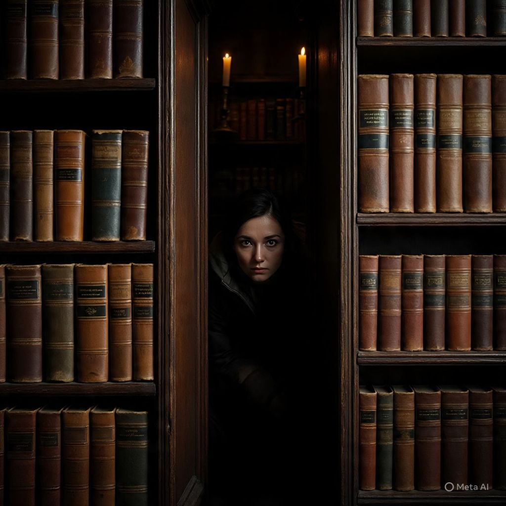 Elianna pushed herself through the small gap between the corner bookshelves. She