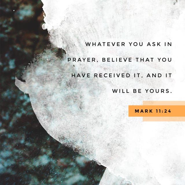 24 Therefore I say unto you, What things soever ye desire, when ye pray, believe that ye receive them, and ye shall have them.