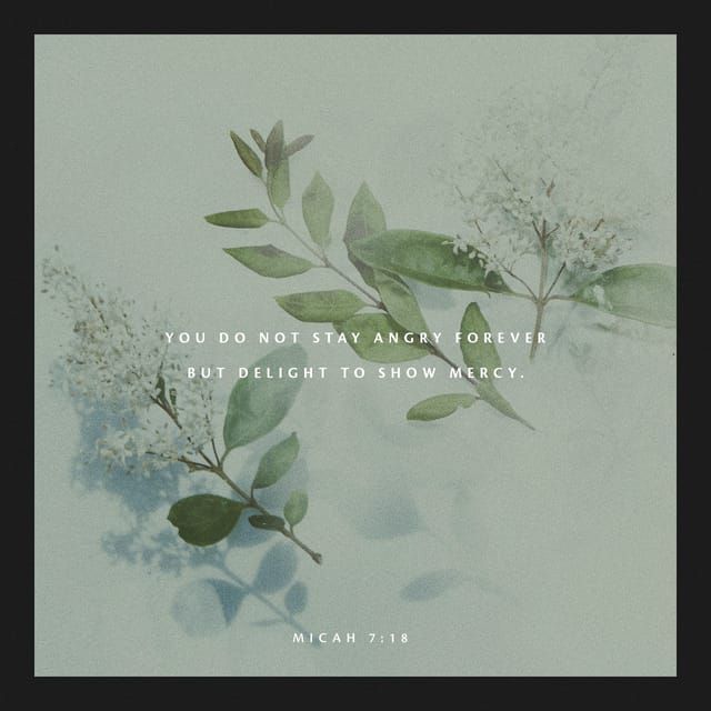 18 Who is a God like unto thee, that pardoneth iniquity, and passeth by the transgression of the remnant of his heritage? he retaineth not his anger for ever, because he delighteth in mercy.