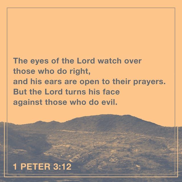 For the eyes of the Lord are over the righteous, and his ears are open unto their prayers: but the face of the Lord is against them that do evil. 1 Peter 3:12 KJV https://bible-strong.app