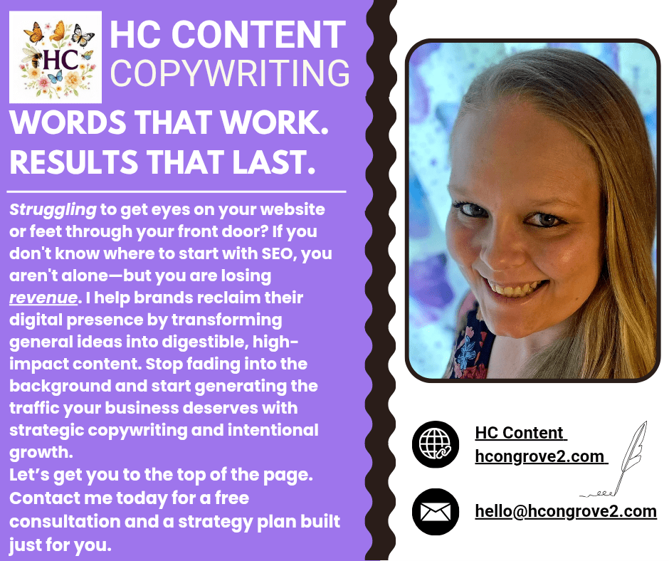 Struggling to get eyes on your website or feet through your front door? If you don’t know where to start with SEO, you aren’t alone-but you are losing revenue. I help brands reclaim their digital presence by transforming general ideas into digestible, high- impact content. Stop fading into the background and start generating the trafficContinue reading “WORDS THAT WORK. RESULTS THAT LAST.”